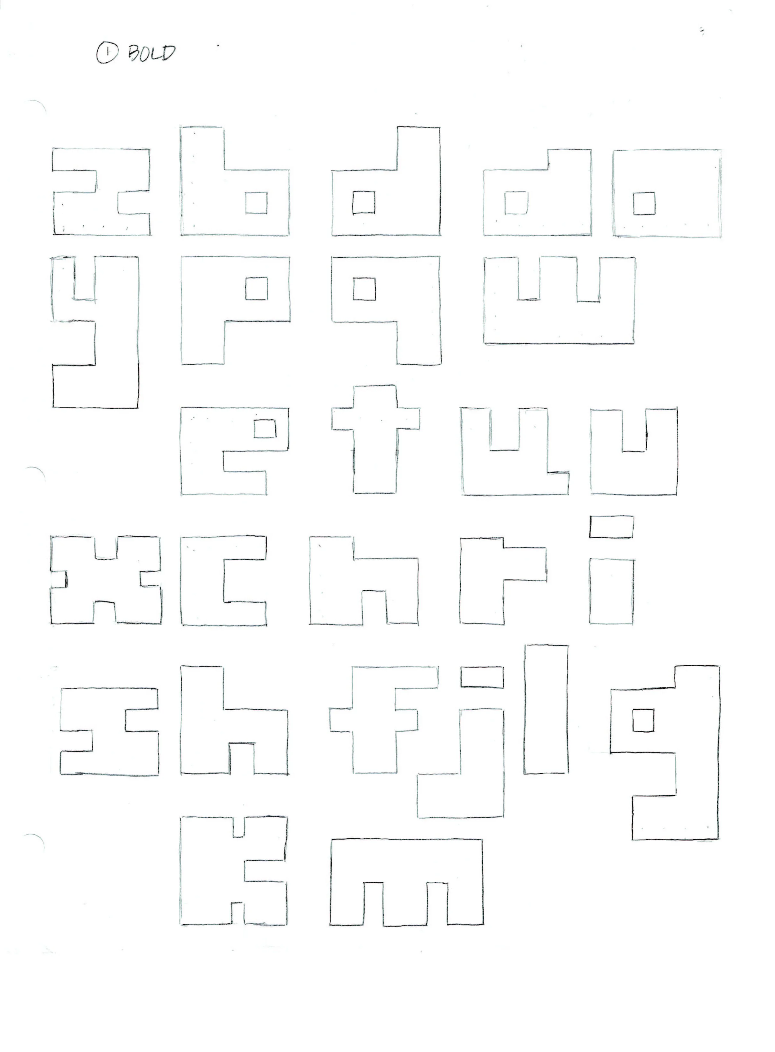 For this step, I drew out the letterforms on graphing paper to have a guide for the angles I wanted to implement onto the letters.
